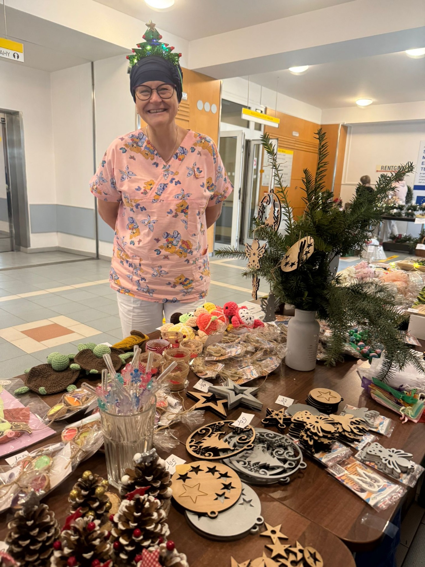 Velké díky patří i zaměstnancům nemocnice, kteří spolek Želvička podporují dlouhodobě a s otevřeným srdcem. Právě oni tvořili většinu návštěvníků jarmarku a svým zájmem, nákupem i milým slovem přispěli k jeho příjemné atmosféře. Jejich každoroční podpora je pro spolek nesmírně cenná a motivující.